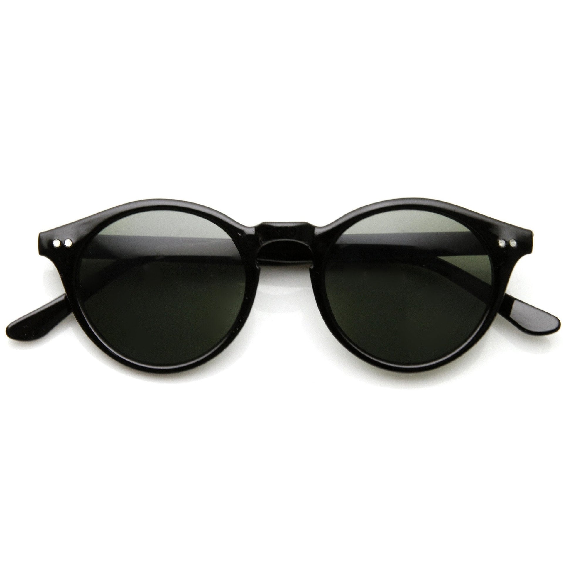 Vintage inspired round p3 horned rim that features horned rim, metal shaped rivets on the temples and a keyhole nose bridge. Made with an acetate based frame, metal hinges and polycarbonate UV protected lenses.