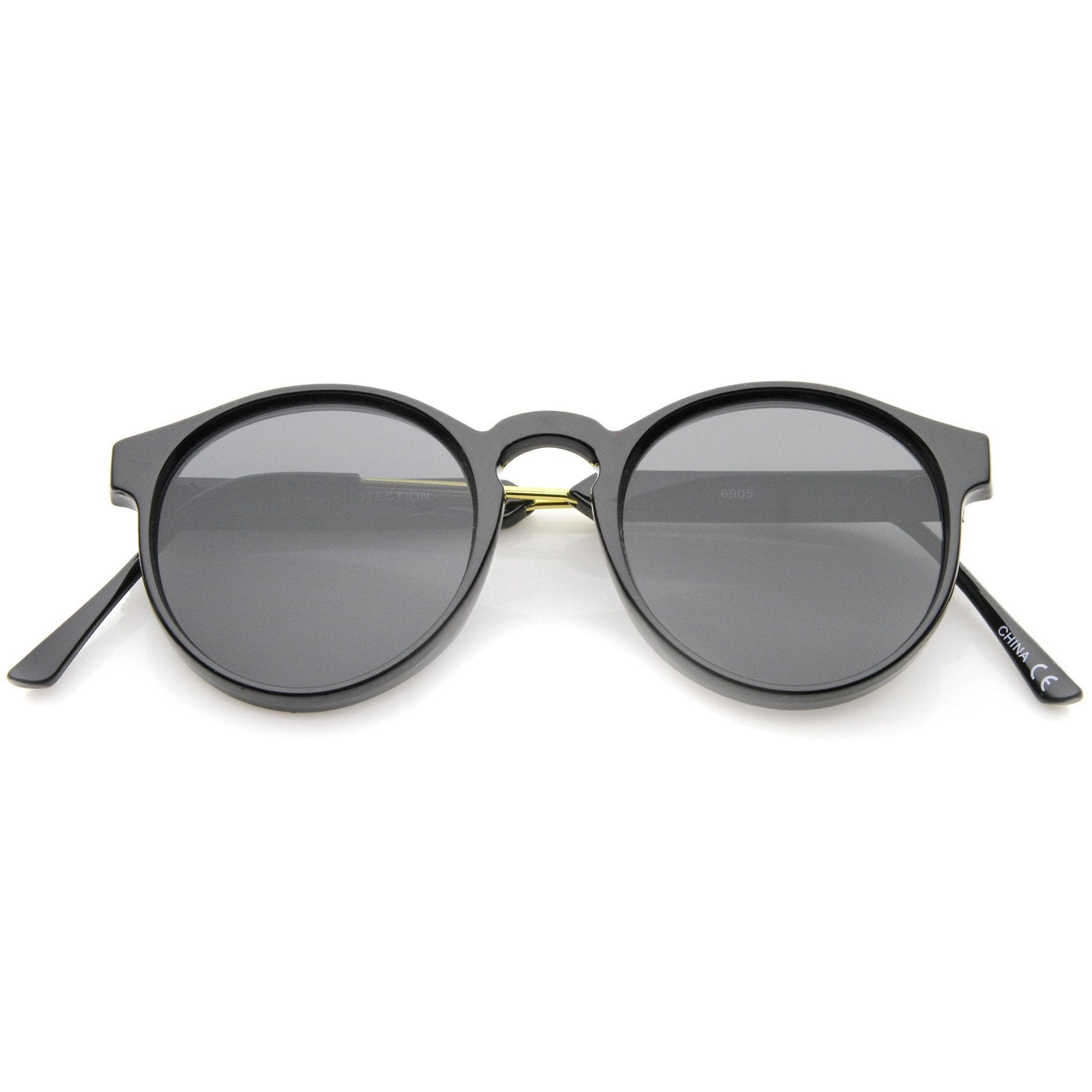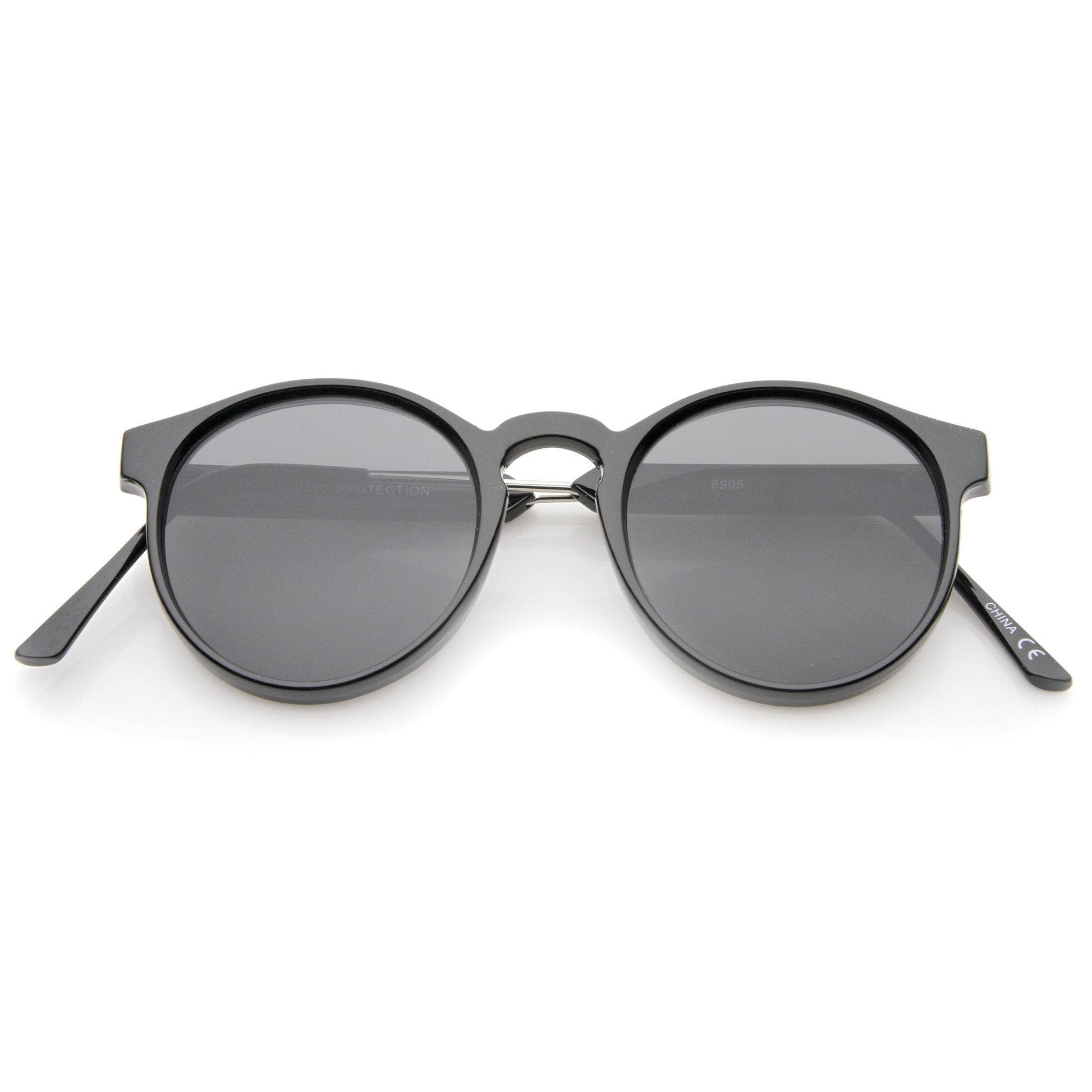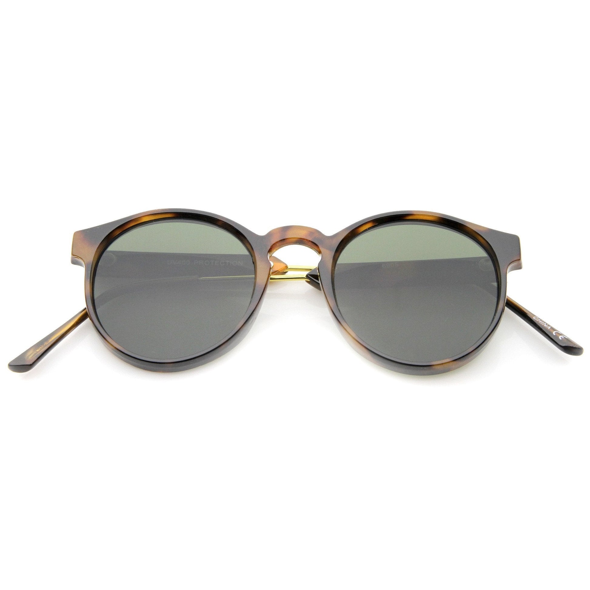 Create a sophisticated look with these P3 round sunglasses. Designed with a stylish round frame with rimmed details and a classic keyhole nose bridge, these classy sunglasses feature neutral-hued flat lenses for everyday appeal. Ultra-slim metal temples complete this luxurious and effortless style, making them a great addition to our P3 collection. Made with a plastic and metal based frame, metal hinges, and polycarbonate UV400 protected lenses.