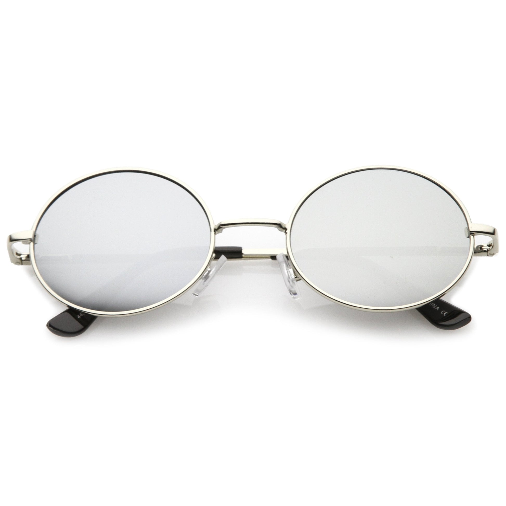 Retro Fashion Oval Mirrored Flat Lens Sunglasses