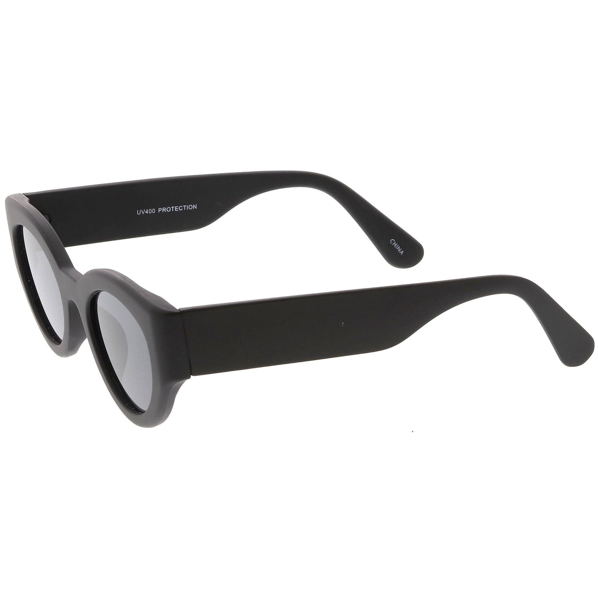 Bold cat eye sunglasses featuring a thick frame and oval flat lenses in neutral colored hues. Accented with stylishly wide arms, these cat eye sunglasses are designed in matte and shiny finishes for a variety of looks. Made with a plastic based frame, reinforced metal hinges, and 100% UV protected lenses.