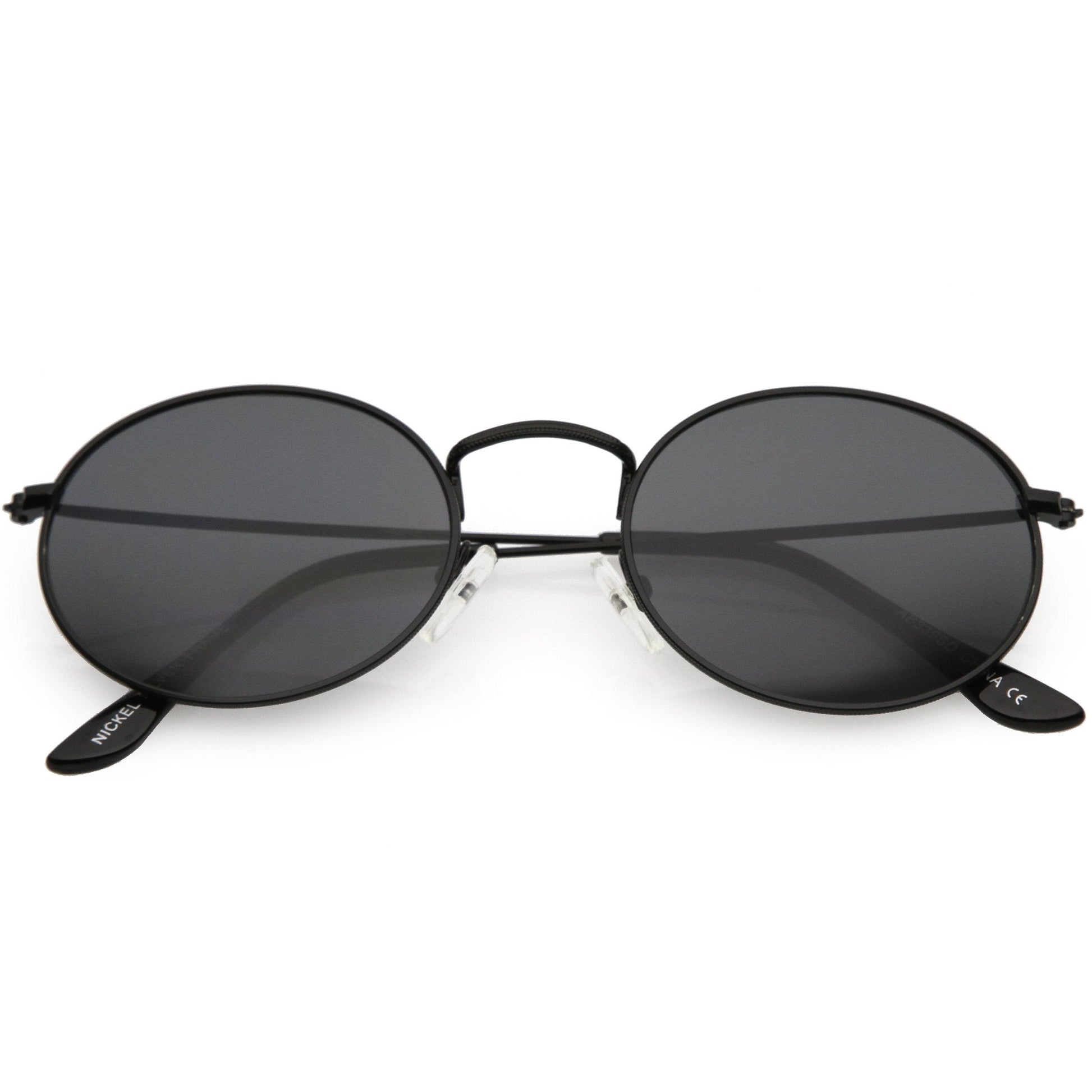 A 90's inspired style with its small design, these metal oval sunglasses are exquisitely crafted with neutral colored oval lenses and super slim metal arms. With it's lightweight feel, these small oval sunglasses are perfect for creating a retro look. Made with a metal based frame, adjustable English style nose pieces, metal hinges, and 100% UV protected lenses.
